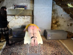 Headmistress ties up slave's balls and whips wazoo bloody
