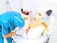 Latex dress and nylons in a threesome with a mask lady