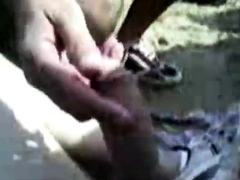 Hot Brazilian MILF fucked by two guys outdoors in the nature